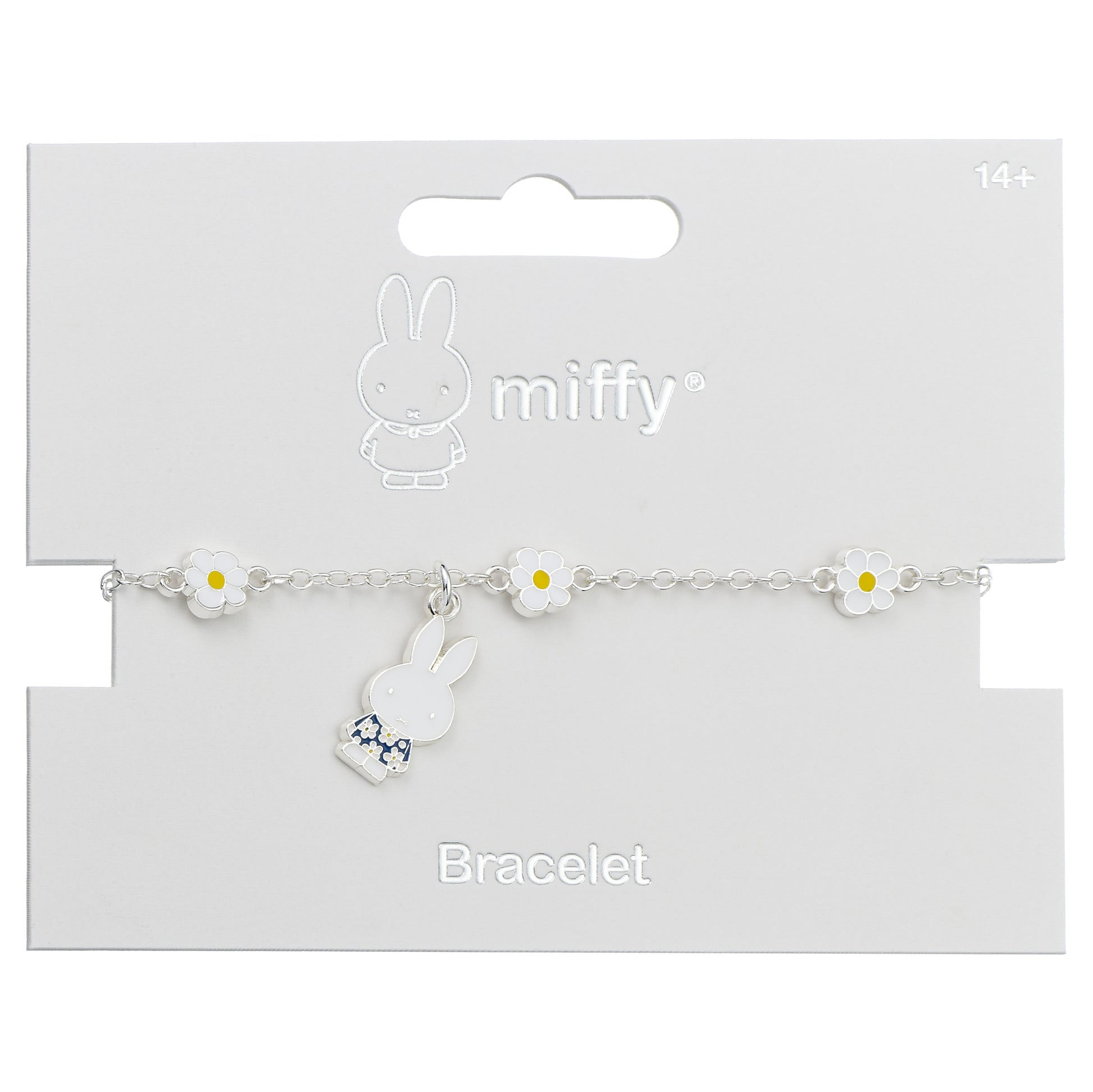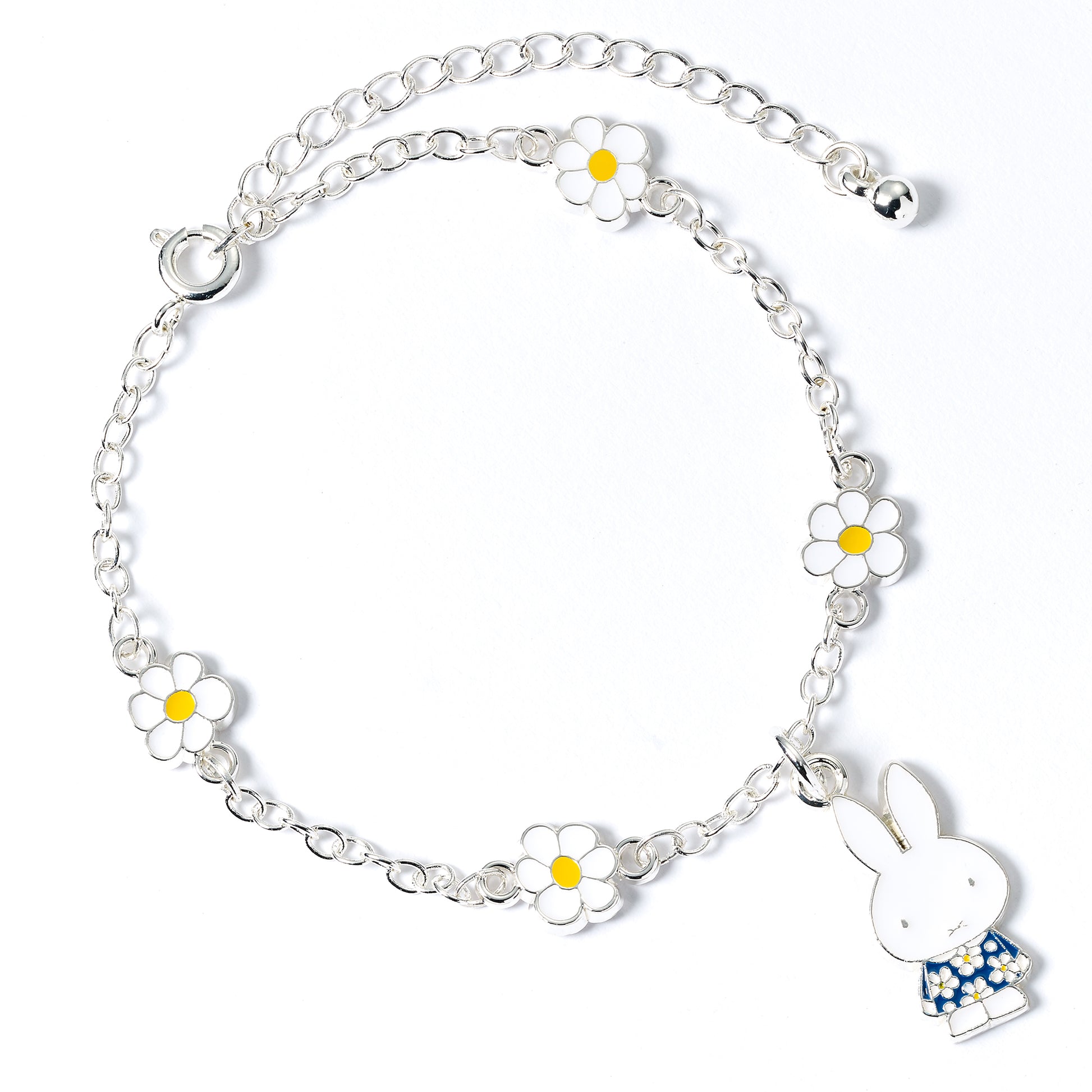 Wear this delightful Miffy chain bracelet adorned with four cheerful daisies and a sweet Miffy charm sporting her favourite daisy dress. From an official collection of jewellery and accessories it adds a pop of playful charm to any outfit.