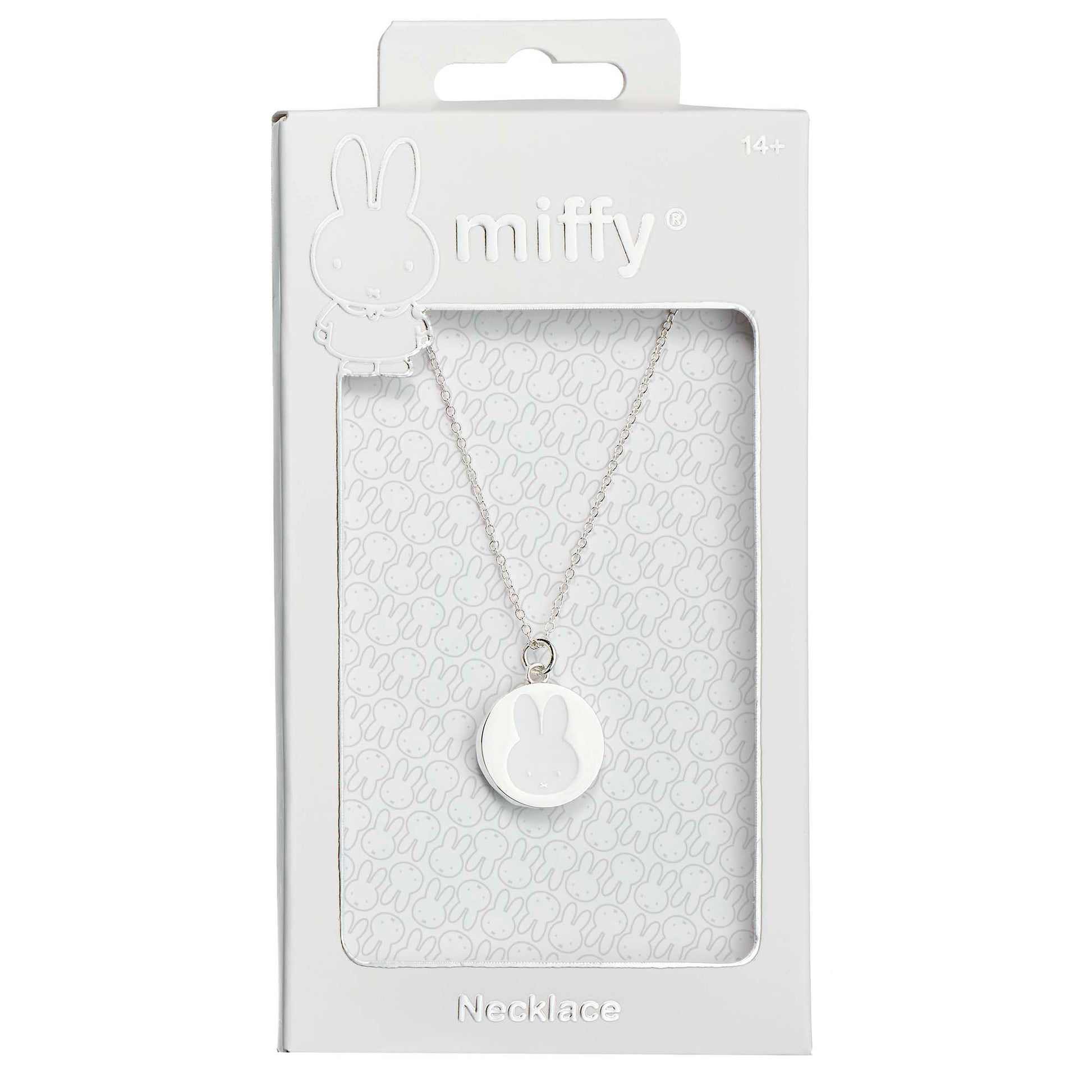 Step into Miffy's delightful world with this fun silver-tone necklace showcasing our beloved character in silhouette. The sweet pendant hangs on a 40cm chain with a 5cm extender to ensure a comfy fit. From an officially licensed Miffy jewellery range, it adds an instant touch of charm to any look! Suitable for ages 14 and older..