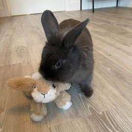 This plush rabbit makes a cuddle friend for your bunny. They are lifelike and can provide lots of comfort to a single bun, or a rabbit needing surgery or to be separated from other rabbits.