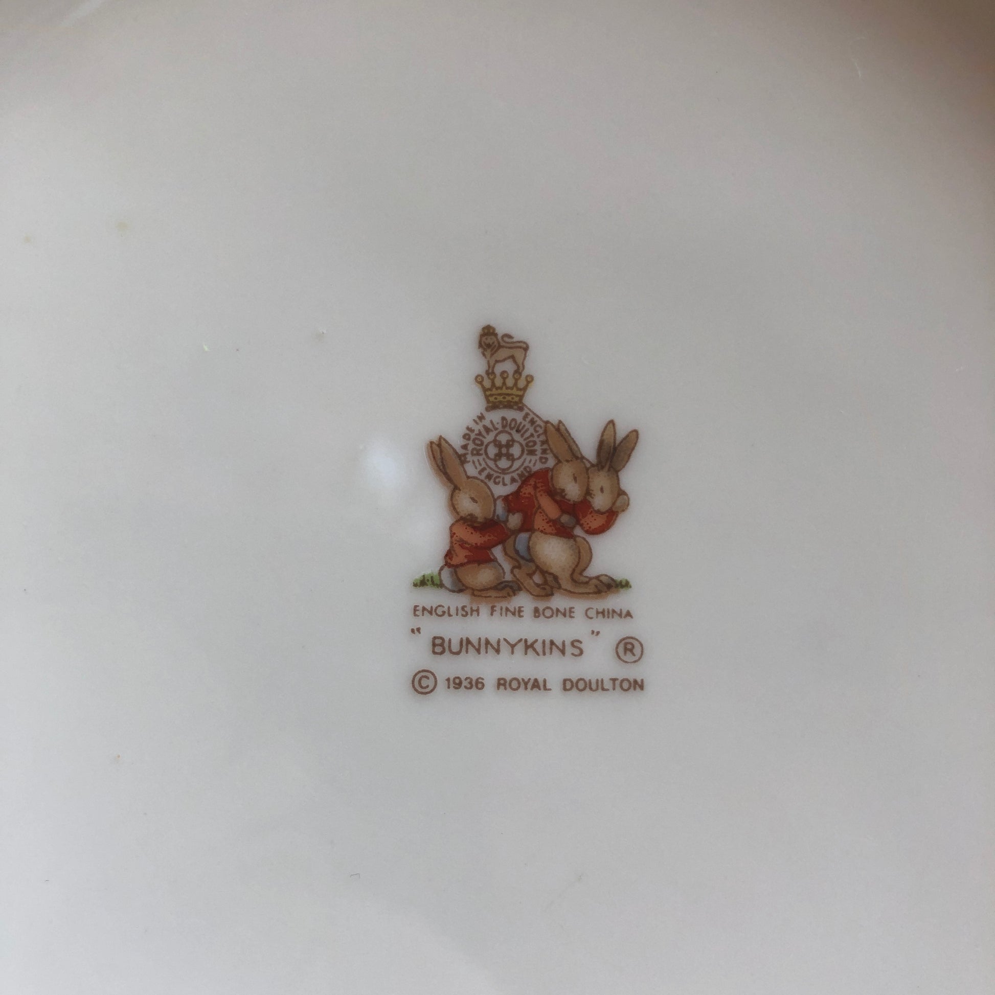 Adorable pre-loved Royal Doulton bowl featuring the Bunnykins design Helping In The Kitchen from 1936.