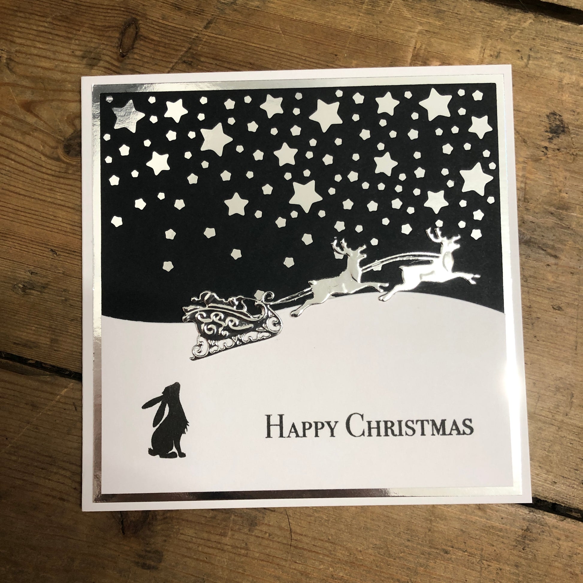 A beautiful little hare is waiting for Father Christmas in this stunning card by Mummy Bunny.